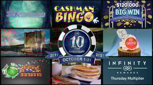 Spin to win! On Friday, Oct. 15 from 5 p.m. to 8 p.m., be one of the first 500 Infinity Rewards members to win a free max bet spin on Cashman Bingo slot machine. Keep what you win on your free spin!