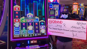 RENO, Nev. (March 22, 2023) – Jessy R. decided to play one more game before checking out at the Grand Sierra Resort and Casino (GSR) on Sunday. It was the East Palo Alto resident’s first time playing at GSR and it’s sure to be a memorable one; Jessy hit a jackpot on Wheel of Fortune for $544,663.47 on an $8 bet after playing for just 10 minutes.
